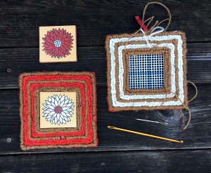 locker hooking with twine and Color Crazy ceramics